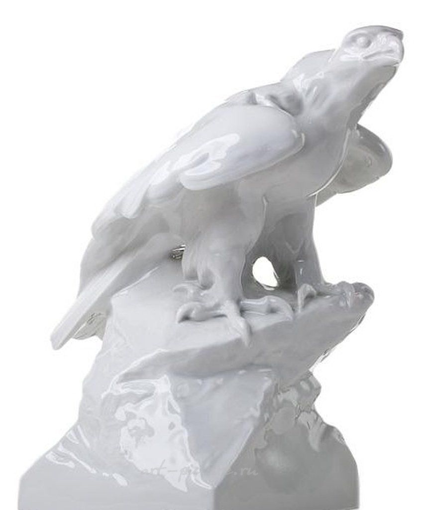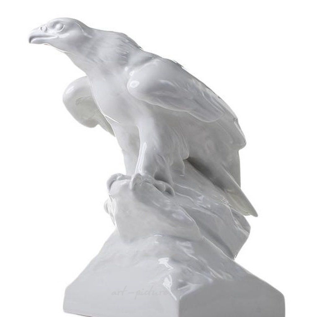 Скульптура «Орел». Мейсен Германия, Meissen, Мейсен, 1957 г. Фарфор; глазурь. Марки: синим подглазурно «скрещенные мечи» (перечеркнуто), в тесте «скрещенные мечи» и «weifr». Состояние: в хорошей сохранности, небольшая профессиональная реставрация. Размеры: высота - 27,5 см., основание - 17x13,5 см.