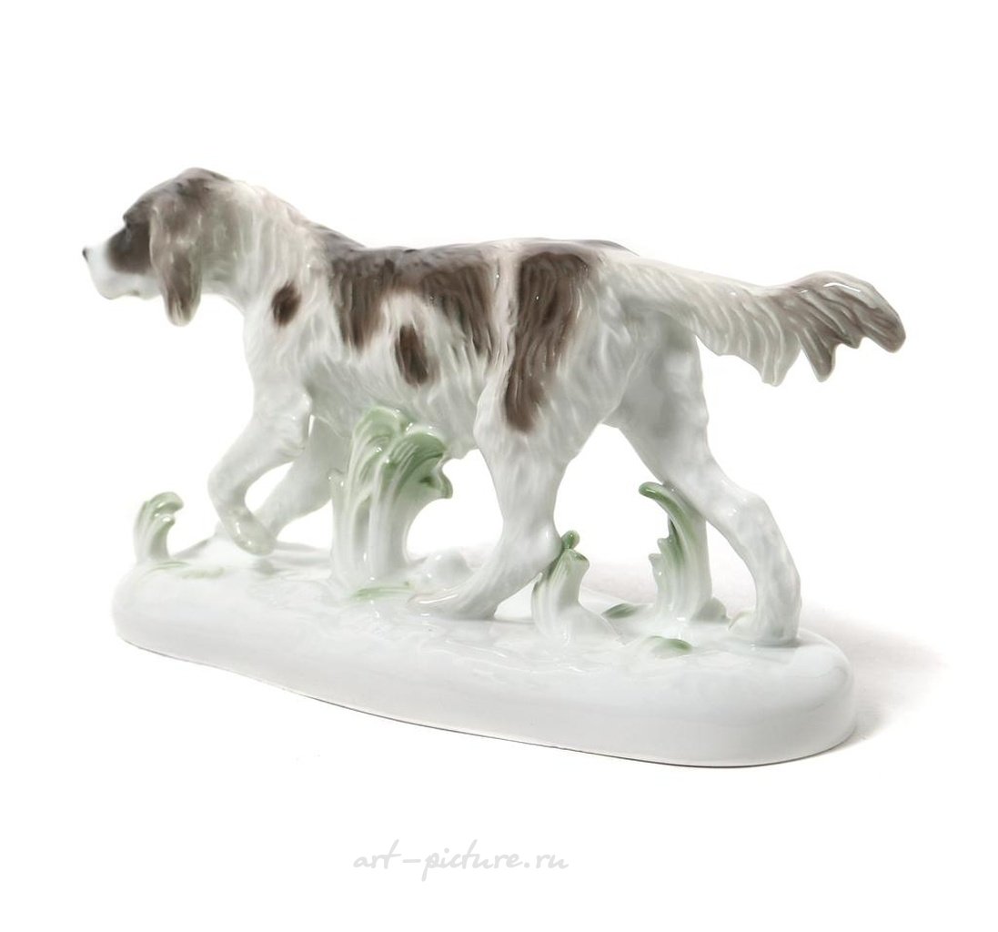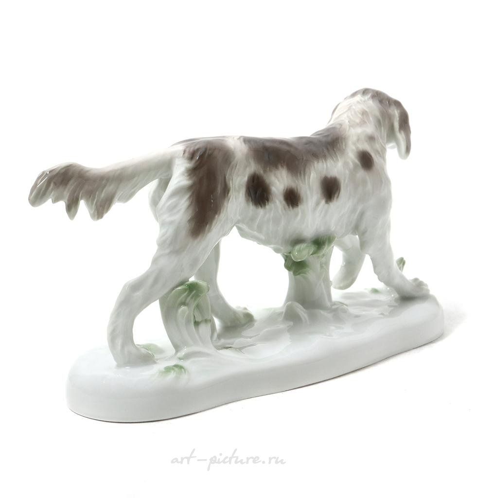 Фарфоровая фигура (статуэтка) "Сеттер". Ручная подглазурная роспись. Германия, Королевская фарфоровая мануфактура, г. Берлин (Königliche Porzellan-Manufaktur Berlin, KPM), 1911-1922 гг. Номер модели: 1739. Высота: 13 см, размер основания: 22,5 х 8,5 см. Без сколов, повреждений и без реставраций. Porcelain figurine "Setter". Hand-painted underglaze. Germany, Königliche Porzellan Manufaktur Berlin (KPM), the 1911-1922. Model: 1739. Height: 13 cm, base size: 22.5 x 8.5 cm. Without chips, damage and restorations. Собака=====