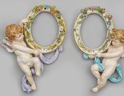 Аллегории времен года, изображенные на изяще изогнутом пьедестале, представлены бюстами девочек и мальчиков, олицетворяющих Весну, Лето, Осень и Зиму. Голова декорирована пластиковым наложением лилий долины и виноградных венков или покрыта летней шляпой, украшенной цветами и колосьями, а также шарфом с веточками пихты. Возможно, авторство Хайнриха Швабе, 1876-1877 гг. Полихромная живопись с золотым стафажем. Модельные номера K 175, K 176, K 177, K 178. Частично восстановлены и имеют незначительные повреждения. Меченые мечом. Высота 25 см - 27 см. См. каталог Королевской саксонской фарфоровой мануфактуры в Мейсене, страница 27. Полная серия четырех фарфоровых бюстов детей в качестве аллегории времен года: Весна, Лето, Осень, Зима. Частично восстановлены. Мечи перекрещены. Мейсен. Вторая половина XIX века.