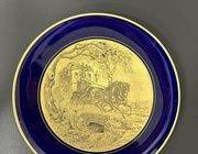 Цветовая палитра этой тарелки также удивительна. Тёмно-синий фон с золотой каймой создает эффектный контраст, который подчеркивает рельефное изображение. Тёмно-синий оттенок, как символ глубины и спокойствия, вместе с золотыми элементами добавляет чувства роскоши и величия. Этот выбор цвета не только выполняет эстетическую функцию, но и воздействует на эмоциональное состояние зрителя, вызывая чувства умиротворения и гармонии — состояние, очень необходимое в нашем стремительном мире.