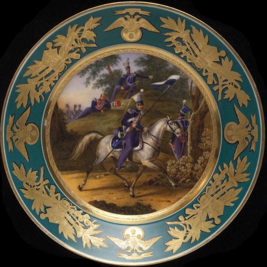 Что может рассказать фарфоровая тарелка с ручной росписью, изображающая рядового Уланского полка 1818 года, о военной культуре и идентичности своего времени? Каким образом такая детализированная работа может изменить наше восприятие истории и искусства? Невероятно, как сочетание цветовой палитры и военной символики на таком хрупком материале позволяет создавать мощные нарративы, не так ли?