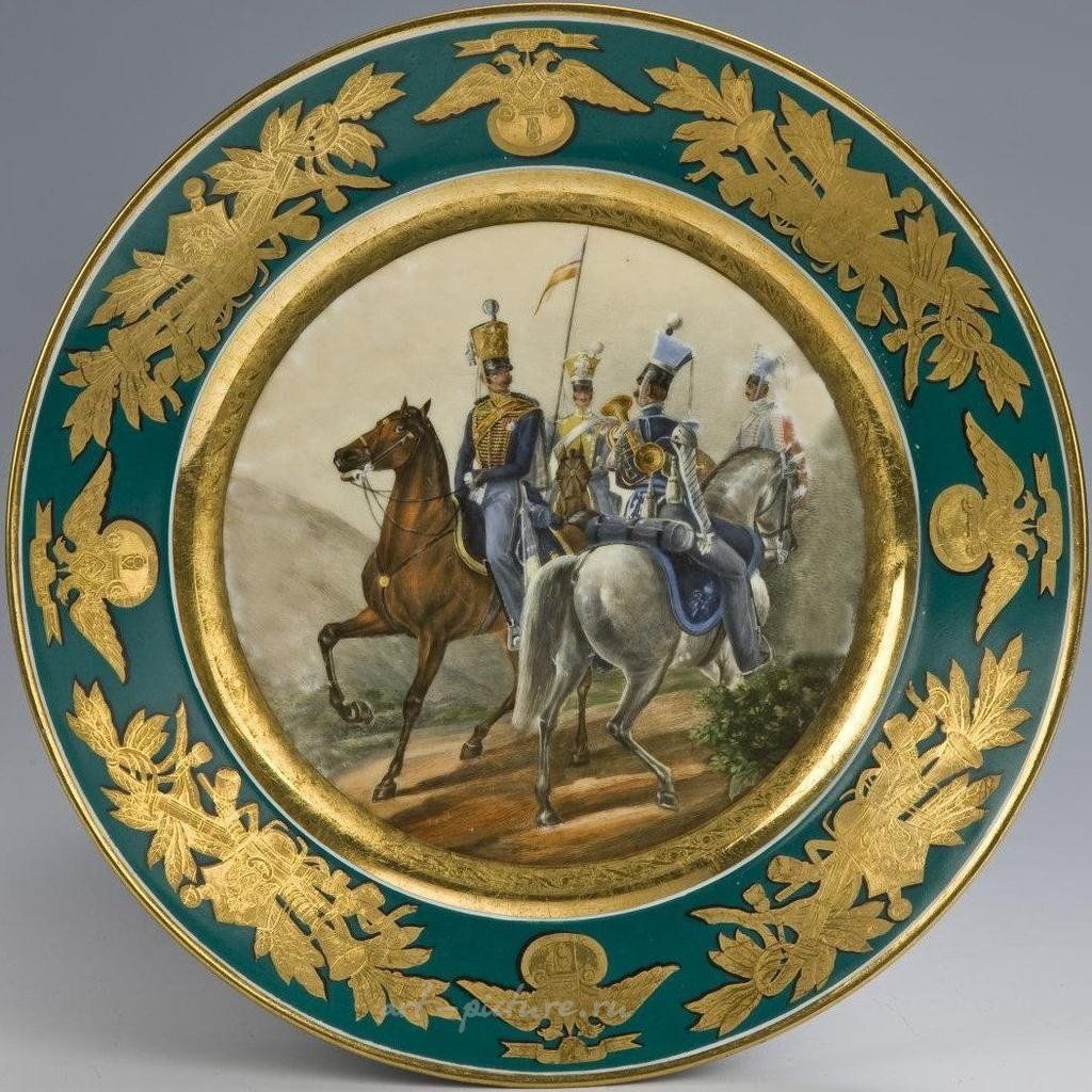 ФАРФОРОВАЯ ТАРЕЛКА С РУЧНОЙ РОСПИСЬЮ “1818 Рядовой Уланского полка”