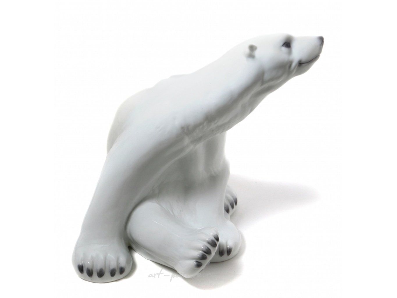Большая фарфоровая фигура (статуэтка) "Белый полярный медведь". Ручная подглазурная роспись. Дания, г. Копенгаген, Bing & Grondahl. Скульптор: Niels Nielsen (годы жизни: 1872- 1921; годы работы на фабрике: 1915-1921). Номер модели: 1954. Инициалы художника, расписавшего статуэтку: SI-IT . Клеймо производителя: 3 towers B&G Kjobenhavn Danmark B&G, 1915-1948 гг. Высота - 44 см. Статуэтка первого сорта. Без сколов и без реставраций. Фигура производилась также после объединения фабрик Royal Copenhagen и Bing & Grondahl (1985-1989) под брендом Royal Copenhagen, номер модели - 442. Large porcelain figurine "White polar bear". Hand-painted underglaze. Denmark, Copenhagen, Bing & Grondahl. Sculptor: Niels Nielsen (years of life: 1872 - 1921; worked at the factory since 1915 to 1921). Model: 1954. The initials of the artist painted this figurine: SI-IT . Factory mark: 3 towers B&G Kjobenhavn Danmark B&G, 1915-1948. Height - 44 cm. Without chips and restorations. The figurine was produced also after the merger of the factories Royal Copenhagen and Bing & Grondahl (1985-1989) under the brand name Royal Copenhagen, model - 442.