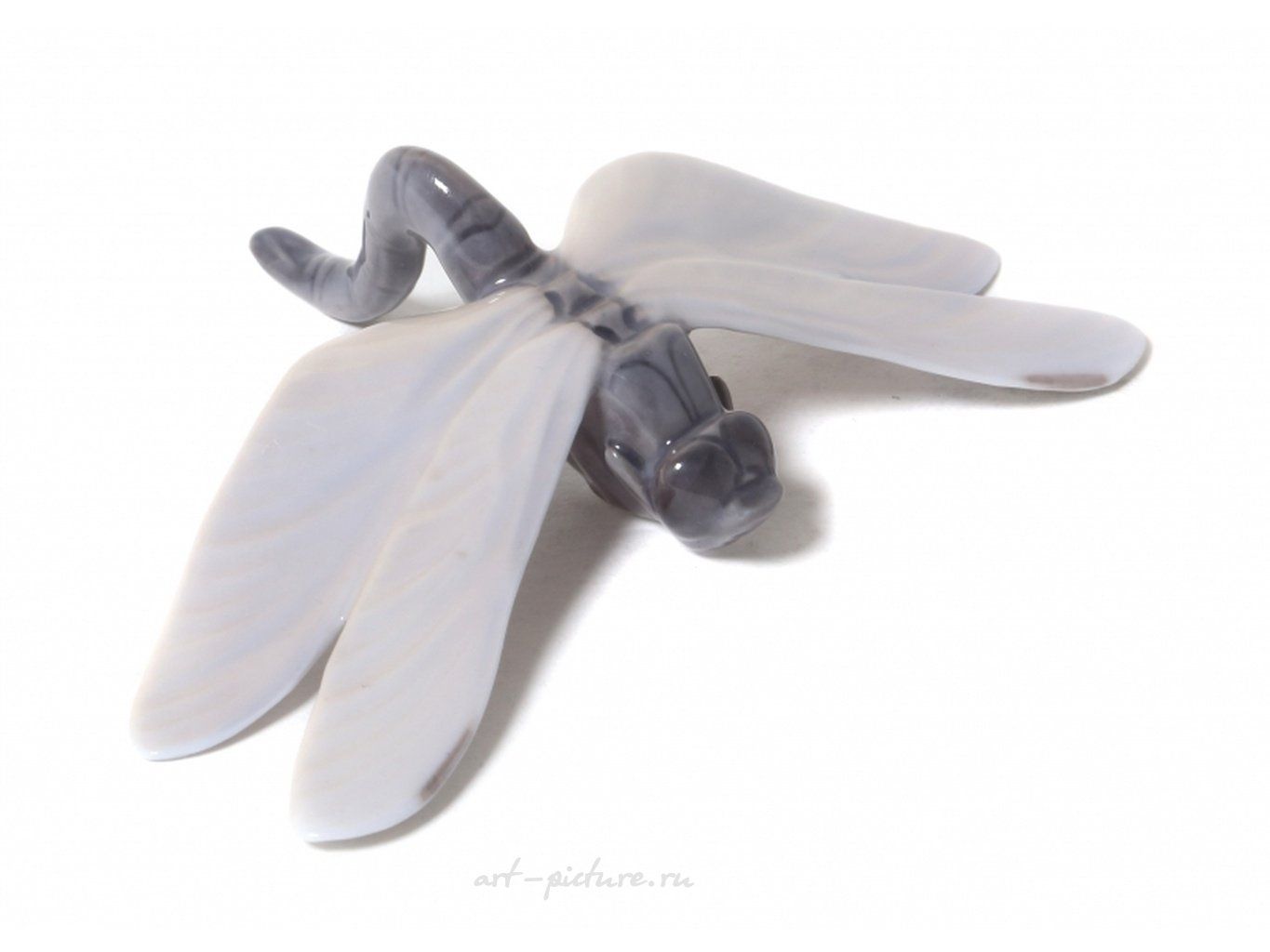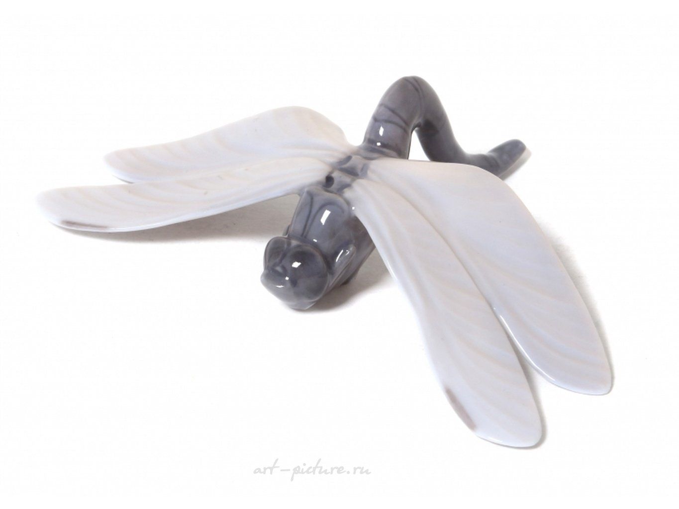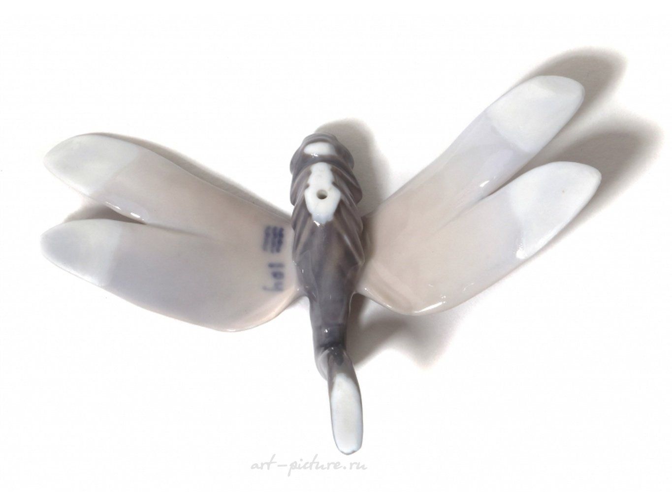 Фарфоровая фигура (статуэтка) "Стрекоза". Ручная подглазурная роспись. Возможно была навершием шляпной булавки. Дания, г. Копенгаген, Royal Copenhagen, до 1910 года. Клеймо производителя. Номер модели: 267, производится до 1910 года. "104" - порядковый номер художника G Appel, расписавшего статуэтку, работал на фабрике с 1903 по 1908 год. Высота: 2 см, длина: 7 см. Статуэтка первого сорта. Без сколов, повреждений и без реставраций. Porcelain figurine "Dragonfly". Hand-painted underglaze. Denmark, Copenhagen, Royal Copenhagen, pre 1910. Factory mark. Model: 267. Produced pre-1910. "104" - the number of the artist G Appel, painted this figurine, worked at the factory since 1903 to 1908. Height: 2 cm, length: 7 cm. Figurine of the first sort. Without chips, damage and restorations.