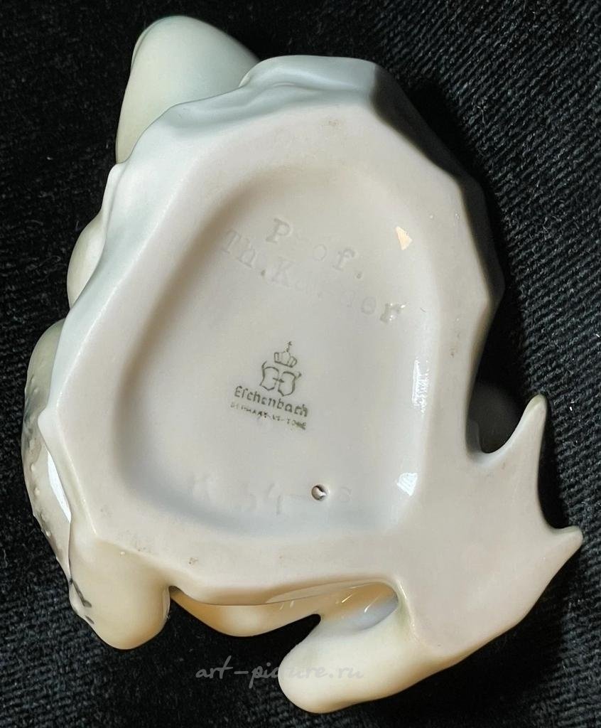 ФАРФОРОВОЯ СТАТУЭТКА ЛЯГУШКИ ЭШЕНБАХ, изготовленной проф. TH. KARNER в ГЕРМАНИИ, в оккупационной зоне США. Эта красивая и редкая маленькая лягушка находится в отличном состоянии, без каких-либо повреждений или ремонта. На основании имеется логотипом Eschenbach ГЕРМАНИЯ в оккупационной зоне США. На обратной стороне надпись проф. Т. КАРНЕР, она была изготовлена примерно в 1946-1949 годах. Размеры примерно 8 х 6 см. RRR!!!
