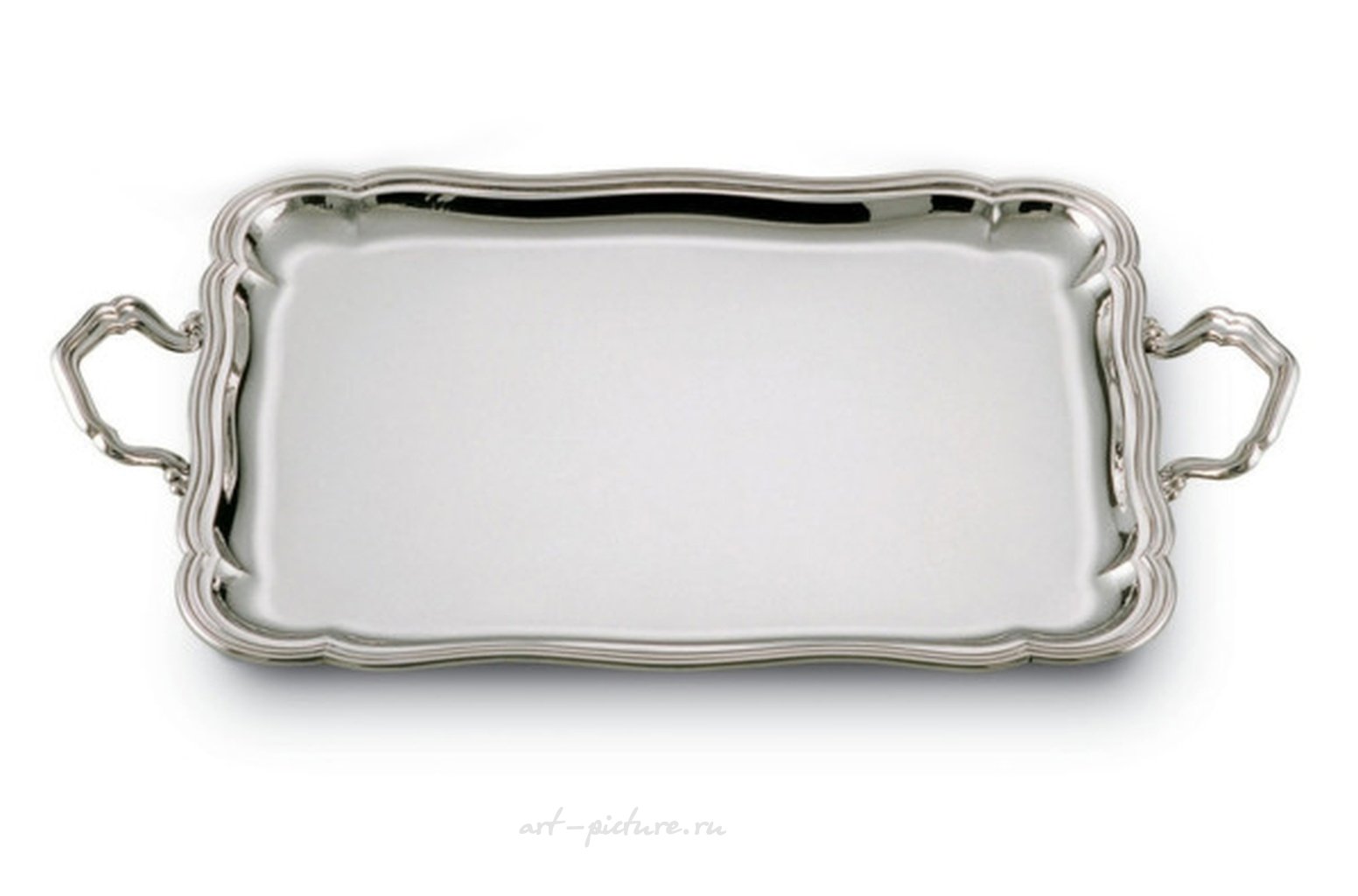 Коллекция: Barocco XVIII век Материал: Серебро 925 ГАБАРИТЫ 560 х 340 мм Вес: 1644 гр. Коллекция Barocco предлагает высочайшее мастерство и украшения и была создана для роскошных домов и столов. Каждый предмет декора аксессуаров предлагается в 925 серебре. Серебряные подносы уверенно вошли в нашу жизнь. Это признак статуса и хорошего вкуса, такой способ подачи еды выглядит эффектно, да и сами блюда под блеском драгоценного металла становятся гораздо вкуснее. Первые подносы появились в Японии более 1300 лет назад. Но выглядели они совсем не так как те, которые мы сегодня можем видеть на прилавках магазинов. Японские подносы напоминали обычные деревянные дощечки. Позднее их стали покрывать черным лаком, украшать камнями и пейзажами из белого кварца, такие изделия сегодня известны как бонсэки. Они использовались в Японии для чайных церемоний, славились своей красотой и изысканностью. На Руси подносы появились гораздо позже – в 16 веке. Изначально они напоминали простые деревянные блюда, которые расписывали яркими и красочными узорами. Позднее стали отличать доски с бортиками из золота и серебра, которые декорировались уже сложной гравировкой.