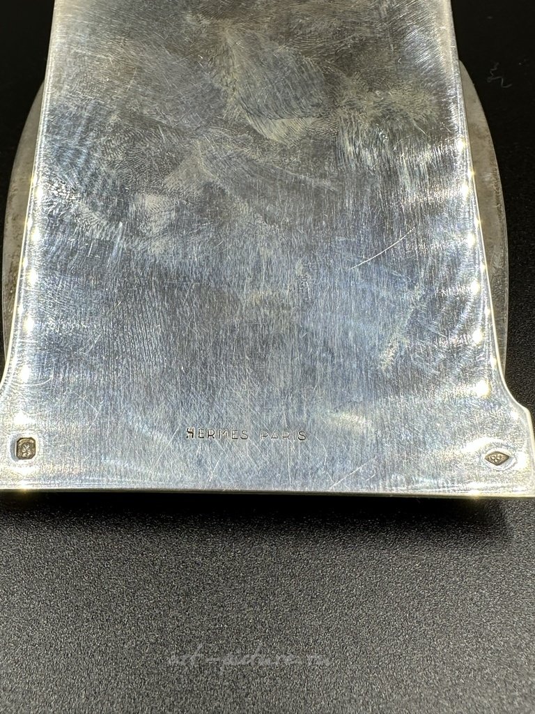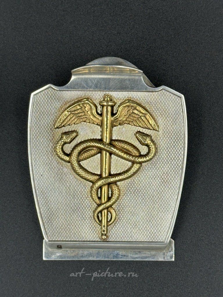 Итак, данный зажим для бумаг впитывает в себя как элементы неоклассицизма, так и ар-деко. Его утонченная текстура и рельефное изображение кадуцея служат связующим звеном между функцией и эстетикой. Можно заметить, что такая внимательность к деталям и материалам, скорее всего, говорит о том, что изделие было создано с значительным мастерством.