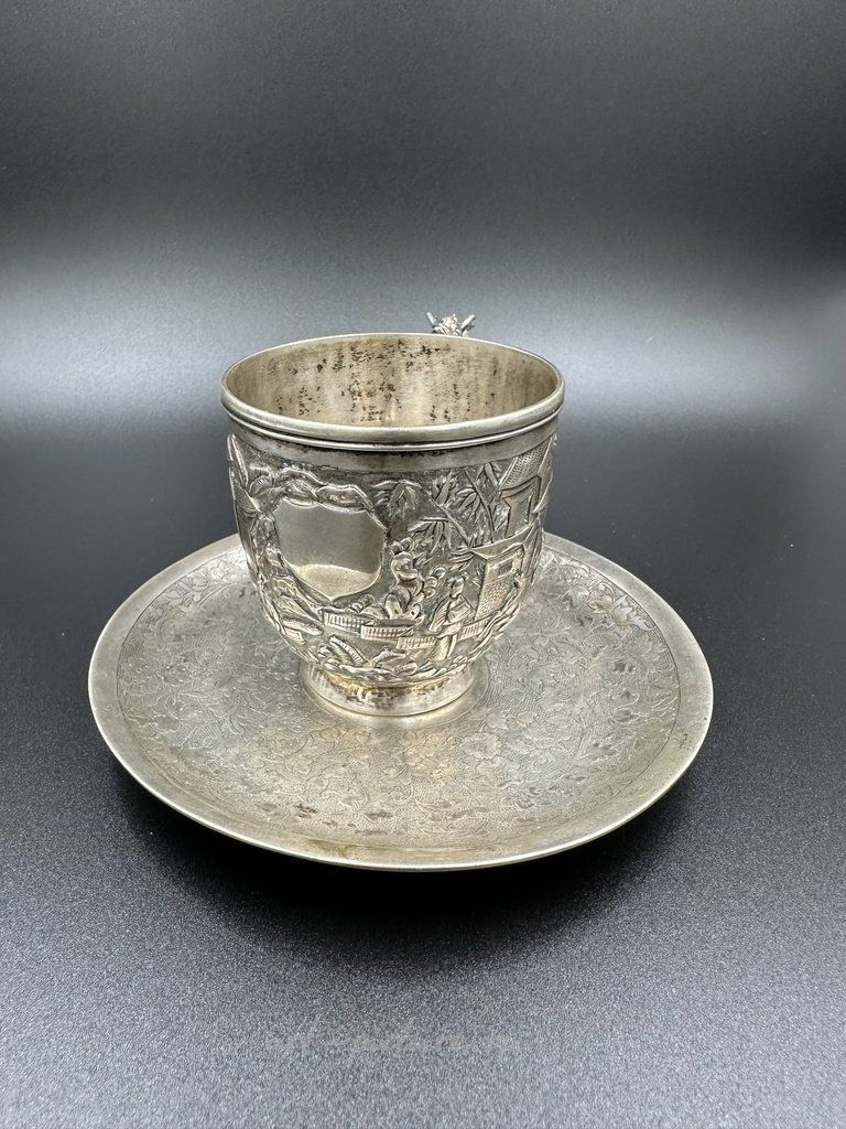 Привет! Очень рад видеть твою заинтересованность и желание проанализировать этот антикварный предмет. Серебряная чашка с блюдцем, которую мы рассматриваем, действительно представляет собой впечатляющий образец китайского ювелирного искусства, особенно в контексте династии Цин.