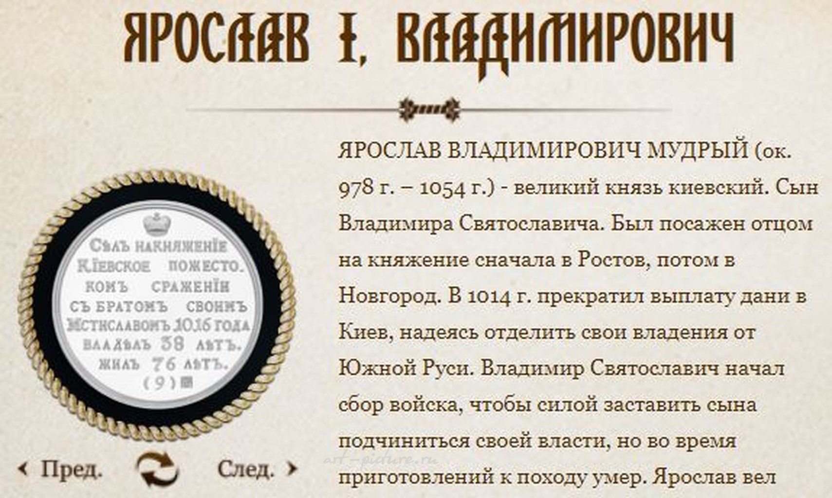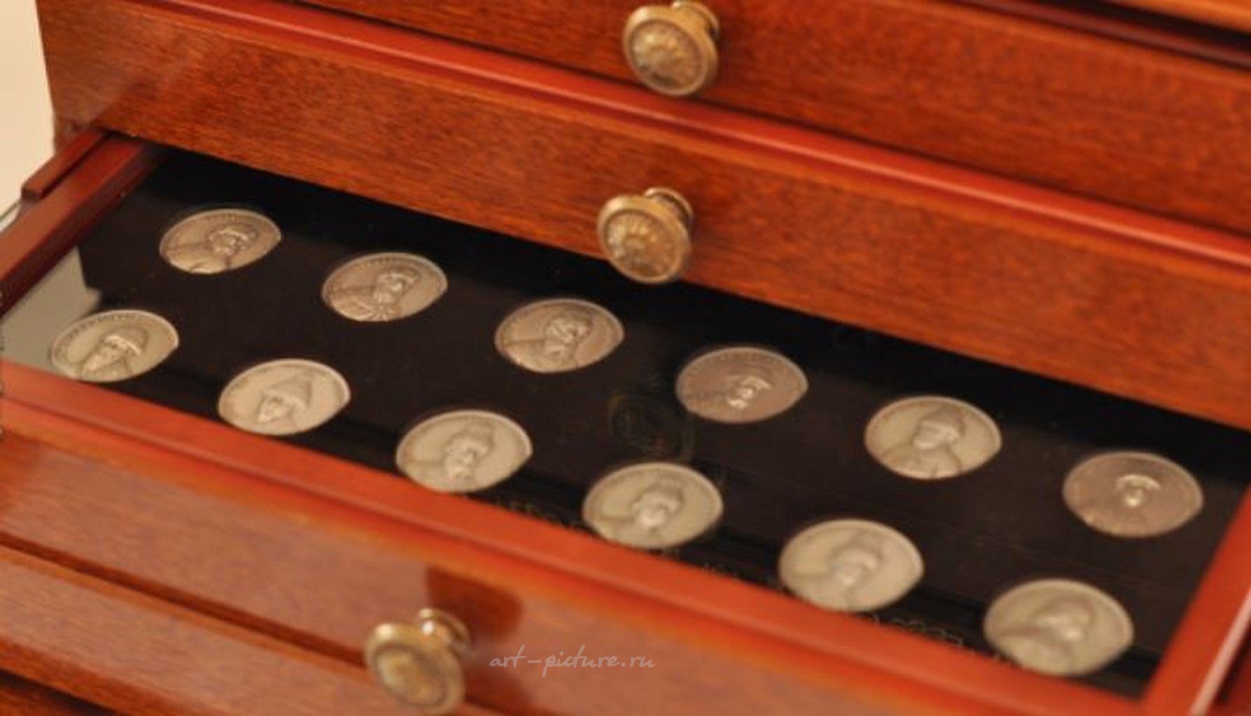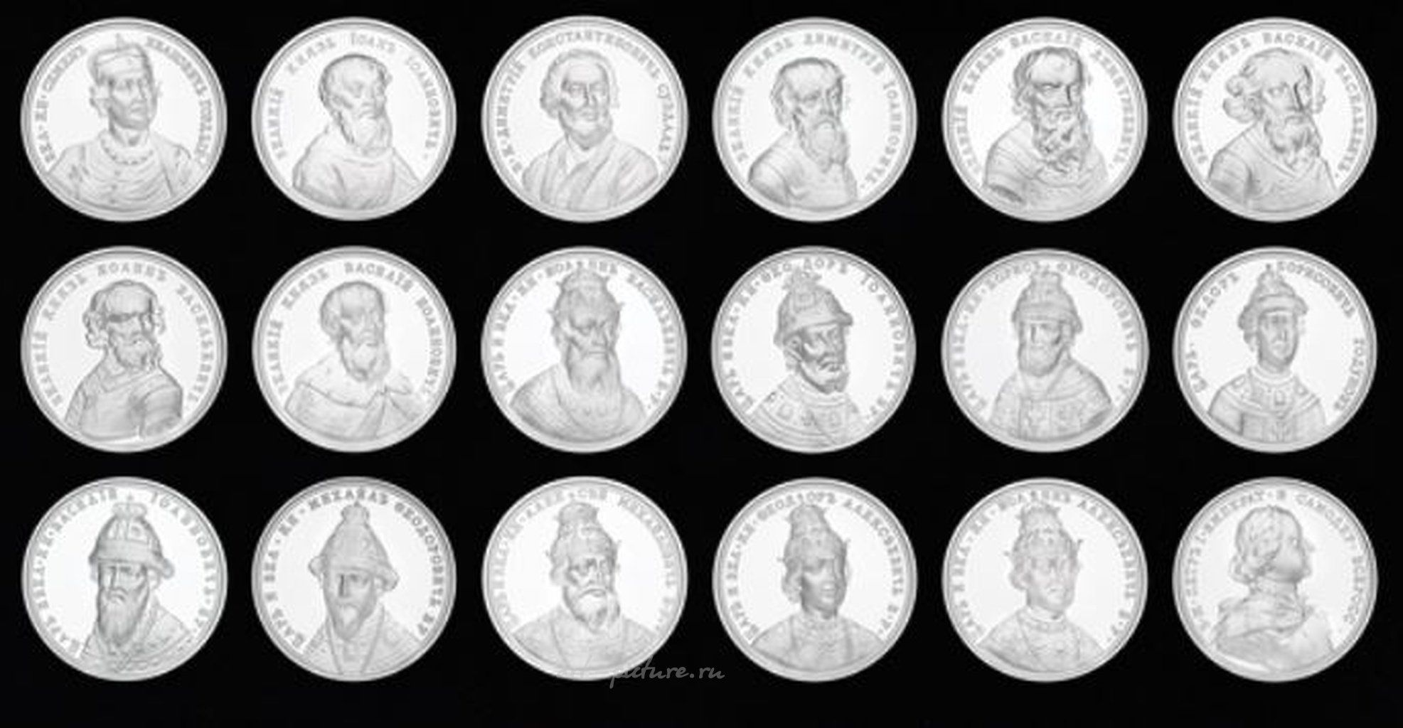 Коллекция серебряных медалей «Великие князья, цари и императоры российские» «Портретная, историческая коллекция» - медали с изображениями Великих князей, царей, императриц и императоров российских 862 – 1894 гг. – одно их важнейших идеологических мероприятий императрицы Екатерины II в медальерном деле. Появление портретной серии медалей было связано с интересом императрицы к отечественной истории и медальерному искусству. При ней в 1768–1774 годах была создана серия из пятидесяти девяти круглых медалей с портретами русских князей и царей (по каталогу В.П. Смирнова – 58 номеров, под номером 12 две медали) – от Рюрика до Петра III. Основой для ее создания стал «Краткий Российский летописец» М.В. Ломоносова и серия портретов русских князей и царей, вырезанных И. Доршем на зеленой яшме. На лицевой стороне каждой медали помещен погрудный портрет князя или царя с круговой надписью, содержащей его имя и титул. На оборотной стороне расположена надпись из «Краткого Российского летописца» с указанием, каким образом был унаследован великокняжеский или царский престол и перечислением основных событий и достижений правителя. В целом портретная серия медалей представляла собой своеобразное наглядное пособие и демонстрировала основную идею сочинения М.В. Ломоносова о преимуществах для России самодержавного правления, в котором он видел залог «блаженства» и «благосостояния» Отечества. В 19 веке в портретную серию были включены еще шесть медалей с изображениями царствующих особ от Екатерины II до Александра III. В 2007 – 2008 гг. Санкт – Петербургский Монетный двор Гознака возобновил чеканку медалей портретной серии на основе сохранившегося исторического инструмента. Коллекция была дополнена отсутствующими в исторической серии медалями с изображениями Иоанна VI и Николая II. Таким образом, количество медалей в коллекции составляет 67 штук. Металл - серебро Проба - 999 Вес медали - 31,1 гр. Диаметр медали - 39 мм Качество отделки: оксидирование с художественной расчисткой. Тираж - ограниченный, 100 коллекций. Коллекции - являет собой результат кропотливой работы, основанной на использовании векового опыта старинных мастеров и очень серьезном отношении к мельчайшим деталям...результат, который будет приносить эстетическое удовольствие еще многим поколениям его владельцев. https://silver-art.ru СПб монетный двор. Серебро. Диаметр 39 мм. Вес 29,99-36,25 г. Редкие. № 1 Великий князь Рюрик. Медальер В. Баранов. В обрезе плеча: «К.В.БАР.». Смирнов № 1. Дьяков № 1604-R1.№ 2 Великий князь Олег. Медальер Ф. Лялин. В обрезе плеча: «Ф.Л.». Смирнов № 2. Дьяков № 1605-R1.№ 3 Великий князь Игорь. Медальер Георг Вехтер. Подписи внизу слева: «G», справа: «W». Смирнов № 3. Дьяков № 1606-R1.№ 4 Великая княгиня Ольга. Смирнов № 4. Дьяков № 1607-R1.№ 5 Великий князь Святослав. Медальер Р. Ганнеман. Подпись внизу справа: «Р.ГАН». Смирнов № 5. Дьяков № 1608-R1.№ 6 Великий князь Ярополк. Смирнов № 6. Дьяков № 1609-R1.№ 7 Великий князь Владимир Святославович. Смирнов № 7. Дьяков № 1610-R1.№ 8 Великий князь Святополк I. Смирнов № 8. Дьяков № 1611-R1.№ 9 Великий князь Ярослав Владимирович. Медальер И.Б. Гасс. Подпись внизу справа: «G». Смирнов № 9. Дьяков № 1612-R1.№ 10 Великий князь Изяслав Ярославович. Медальер Ф. Гасс. Подпись внизу справа: «F.G». Смирнов № 10. Дьяков № 1613-R1.№ 11 Великий князь Святослав Ярославович. Медальер И.Б. Гасс. Подпись внизу справа: