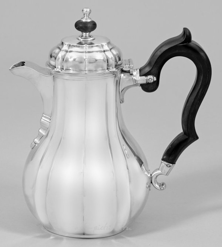 Как же красиво! Этот кофейник в стиле барокко — настоящий шедевр искусств. Серебряная поверхность вместе с изысканными деталями и изогнутой ручкой создают ощущение роскоши и утонченности. Такой предмет не только украсит стол, но и станет гордостью любой коллекции.