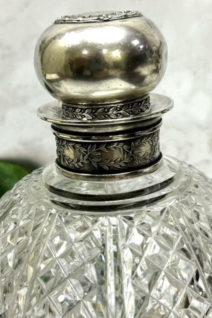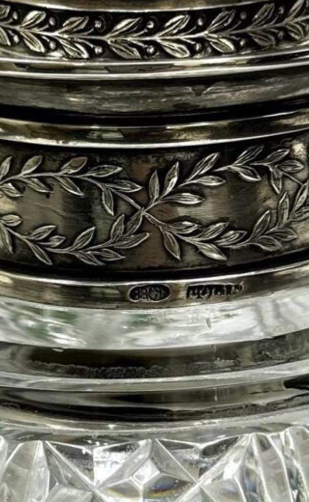 Этот хрустальный графин, как вам уже известно, относится к стилю ампир – одному из самых знаковых направлений в декоративно-прикладном искусстве конца 18-го – начала 19-го веков. Ампир характеризуется строгими формами, массивными элементами и часто использует вдохновение из античной культуры. В данном случае, элегантные линии и изысканное убранство графина с серебряной отделкой подчеркивают его принадлежность к этому стилю.