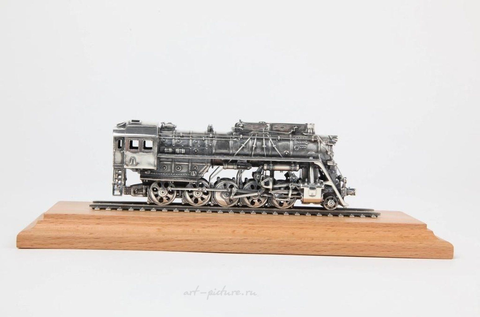Паровоз серии Л, серебро Представляет Вам новое творение Скульптурной мастерской Игоря Коломийченко – серебряную фигуру промышленного паровоза серии Л На его изготовление у мастеров-ювелира ушло 110 часов ручного труда. По красоте и деталям паровоз не уступает своему стальному товарищу, выполнен в единственном экземпляре для подарка партнёру РЖД. Паровоз Л (Л — в честь Л. С. Лебедянского; до 1947 года — П — «Победа»; заводское обозначение — П32 — паровоз 32-го типа) — советский магистральный грузовой паровоз типа 1-5-0, разработанный в конце Великой Отечественной войны совместно Коломенским заводом и ВНИИЖТ под руководством конструктора Л. С. Лебедянского и академика С. П. Сыромятникова, и выпускавшийся с 1945 по 1955 год.