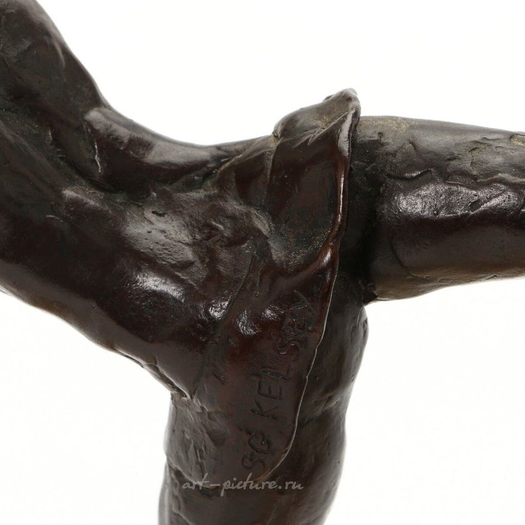 Статуэтки основаны на небольших платформах, которые отличаются по материалу и фактуре: несмотря на то что сами фигурки выполнены из бронзы, основания подчеркивают их художественную ценность и создают контраст между гладкостью бронзы и текстурой платформ. Этот аспект продуман до дробных деталей и демонстрирует глубокое понимание и знание материалов, с которыми работал скульптор.