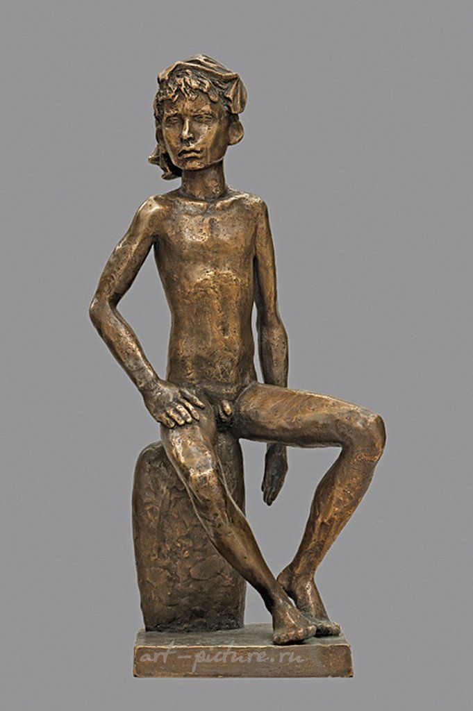 Когда я впервые увидел эту скульптуру, меня поразила его реалистичность и внимание к анатомическим деталям. Этот мальчик, сидящий на камне, кажется застывшей минутой, когда мысли еще не окрашены внешним влиянием. Его фигура, выражающая задумчивость, придает работе глубину и открывает пространство для различных интерпретаций. Дронов мастерски использует бронзу для передачи текстуры кожи и волос, что является свидетельством его высоких художественных навыков.