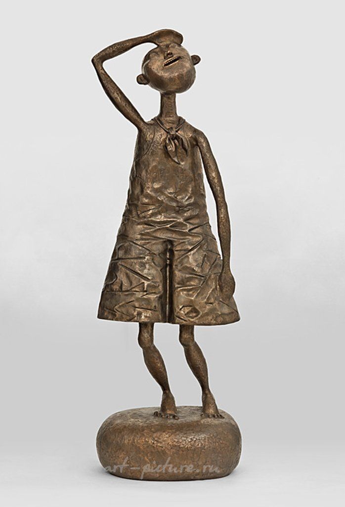 Дронов Михаил. Скульптура Михаил Викторович ДРОНОВ родился в Москве в 1956 году. Прошел серьезную академическую школу Московского художественного института имени В.И.Сурикова, который закончил в 1980 году по факультету скульптуры. Учился в мастерской профессора Михаила Бабурина. Раннему формированию личности и таланта скульптора, его пластической основательности способствовали серьезная классическая школа Суриковского института и близкое знакомство с современным западным искусством. С 1983 - член Союза художников СССР, в 1990 вступил в Союз художников России. Награжден серебряной медалью ВДНХ СССР (1985), 1-й премией Квадриеннале скульптуры-1988 в Риге, дипломом "Лучшая работа МОСХа" (1988), медалями Российской Академии художеств (1995, 2001, 2006). Скульптура Михаила Дронова находится в собраниях Государственной Третьяковской галереи, Государственного Русского музея, Московского музея современного искусства, московской галереи «ЛЕС», Королевского музея Нидерландов, в частных коллекциях Америки, Англии, Германии, Дании, Нидерландов, Франции, Швейцарии, России. М. Дронов – участник множества выставок, состоявшихся в Москве, С.-Петербурге, Лондоне, Милане, Нью-Йорке, Чикаго, Амстердаме, Гааге. Среди них наиболее значимые: "Шаг к бронзе" и "Власть воды" (Государственный Русский музей, 2008), "Восьмидесятники. Русское искусство" (галерея "Peace and Color", Лондон, 2007), выставки к 250-летию со дня основания Российской Академии художеств ("Манеж" Москвы и Петербурга, 2007), "Экспрессия духа" (Галерея "Дом Нащокина" в Музее революции, Москва, 2007), "Обитаемые острова" (Государственная Третьяковская галерея, 2006), Международный фестиваль "Скульптура`98" в Гааге, "Мир чувственных вещей в картинках" – конец ХХ века (ГМИИ им. А.С. Пушкина, 1997). Масштабная персональная ретроспектива М. Дронова состоялась в РАХ (2006). Михаил Дронов - один из ведущих отечественных скульпторов, действительный член Российской Академии художеств - принадлежит к числу тех поколении "восьмидесятников", кому во времени исторических перемен довелось реформировать российскую пластику. Образный мир произведений подчинен исключительно свободе собственного мироощущения и самовыражения. Скульптор свободно работает в станковой и монументальной скульптуре, в круглой пластике и рельефе, виртуозно владеет жанром портрета, многофигурной композиции, редкого в скульптуре натюрморта. Великолепный профессионал, он легко переходит от реалистически-иллюзорной лепки к обобщенным формам. Свободно владея языком пластики, Дронов создает свой художественный мир, причудливый и многообразный. Его произведения, полные иронии и гротеска, основаны на взаимосвязи реальности и причудливых фантазий. позволяющей посмотреть на обычные предметы и явления с совершенно неожиданной, необычной точки зрения. Обыденные вещи, одухотворены шутливо-эмоциональным авторским видением: бронзовые валенки , бронзовый бумажный кораблик, огромная канцелярская кнопка. Дронов свободно трансформирует натуру, вызывая самые разнообразные ассоциации. Скульптуры: «Старый король», «Ночные гости», «Каприччос» - вечные персонажи, характерные именно таким прочтением образа. Строгая, выверенная, доведенная до геометризма форма обогащается игровым началом, автор добивается многозначности, глубокой эмоциональности и острой экспрессивности. Зашифро