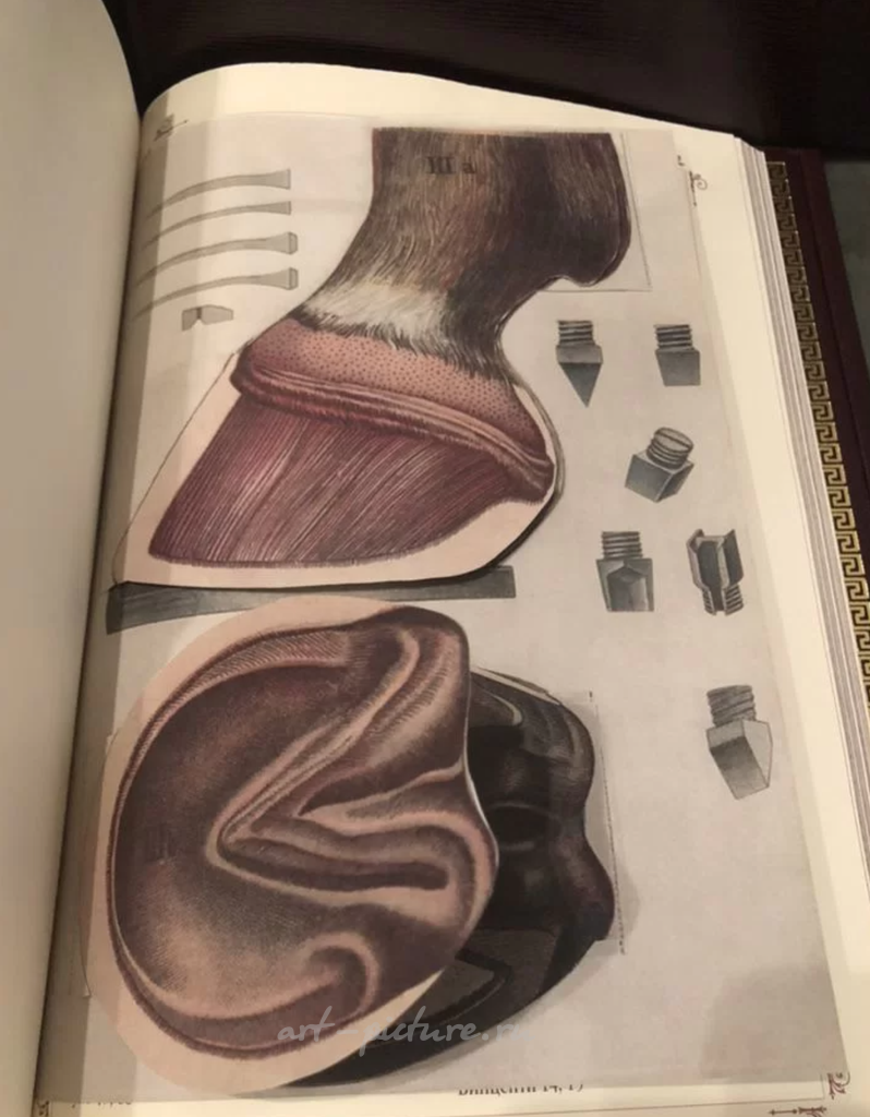 Эта книга о лошадях представляет собой не только объемный труд, но и истинный шедевр оформительского искусства. Очаровывает её элегантный стиль, изысканное искусное переплетение натуральной кожи с золотым тиснением. Визуально такая книга предстает не просто как источник знаний, но как настоящий объект коллекционного наслаждения. Я, как любитель искусства и эстетики, испытываю восторг от того, как мастера смогли создать столь величественное оформление. Однако, как вы правильно отметили, практичность такого издания может вызывать вопросы. Возможно, такой роскошный экземпляр действительно лучше всего смотрится на полке, нежели в руках своего владельца. Но в то же время, через призму личного опыта, я считаю, что действительно глубокие и содержательные тексты способны принести радость и знания, когда они разворачиваются перед читателем. Естественно, приобретение такой книги требует размышлений о балансе между её прекрасным обличием и утилитарной ценностью.