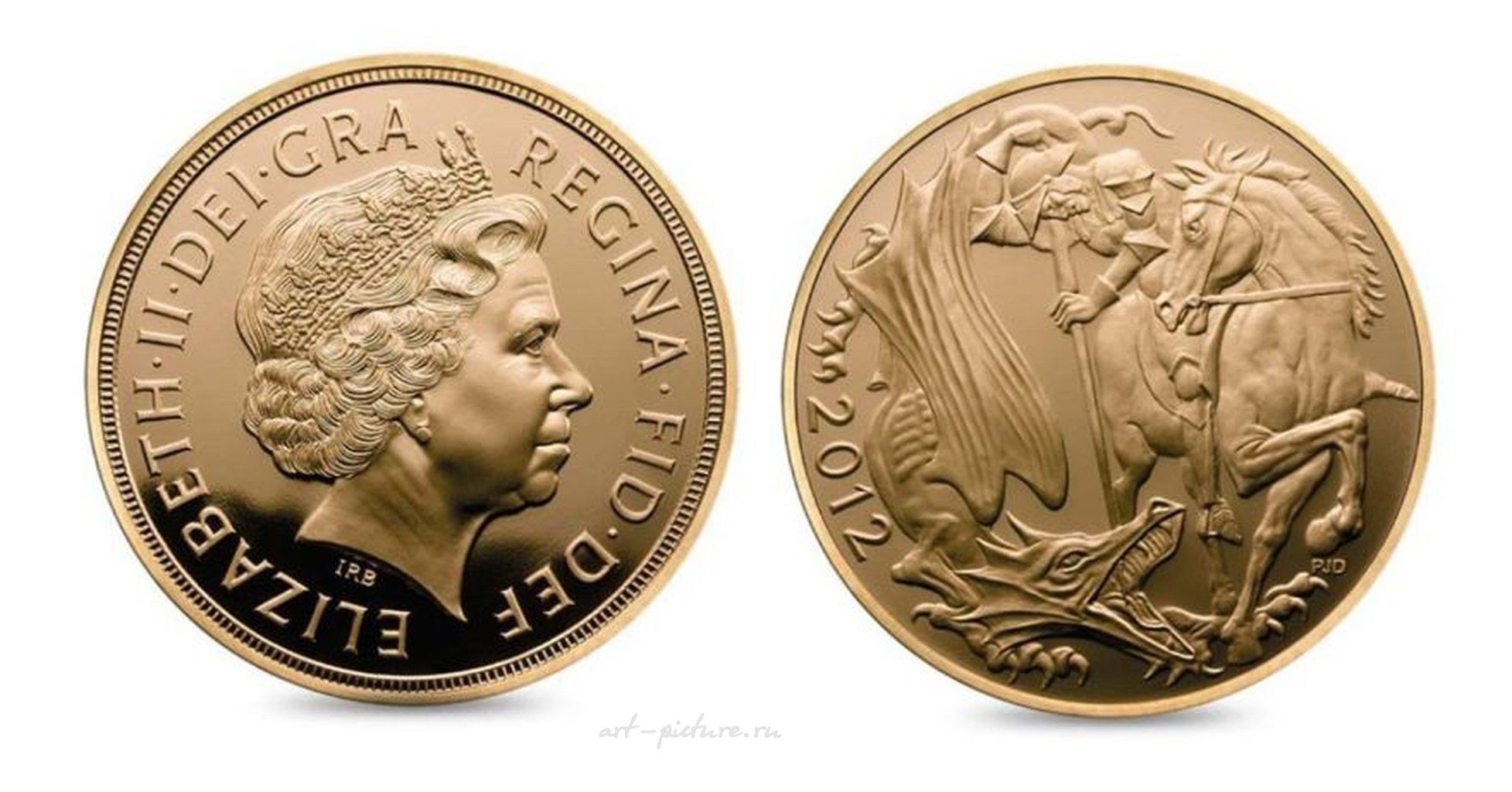 Полный набор Соверенов 2012 года Специальный выпуск Proof. 5 монет, достоинством: 5, 2, 1, 0.5, 0.25 фунта. 2012 Full Gold Proof Sovereign 5-Coin Set Код продукта: HISSOV12 Специальный выпуск Proof выпускался один год! Очень редкий набор. RRR!!! Популярное праздничное издание The Sovereign, выходящее только один год Отчеканен в 2012 году, в год Бриллиантового юбилея королевы Елизаветы II. На реверсе монет изображен альтернативный дизайн Святого Георгия и дракона, разработанный Полом Дэем. С четвертым по счету портретом королевы работы Яна Рэнка Бродли. This 2012 Diamond Jubilee British sovereign five coin gold proof set is struck in 22 carat gold. It contains five gold proof coins; the quarter sovereign, the half sovereign, the full sovereign, the double sovereign and the quintuple sovereign. If you have one for sale please call for a quote This beautiful coin set comes in a wooden presentation box with a certificate. It is limited to just 999 sets. See the rest of the 2012 Sovereign Collection. Diamond Jubilee Sovereigns The Queen celebrated her Diamond Jubilee in 2012. To commemorate this special occasion, a new St George and the Dragon reverse engraving by Paul Day was comissioned. Type Sovereigns The 2012 sovereign is popular with collectors interested in 'type' sovereigns. Previous one-off designs issued during Elizabeth II's reign include the 1989 500th Anniversary Sovereign, the 2002 Shield Reverse Sovereign issued to celebrate the Queens Golden Jubilee, the 2005 Sovereign featuring a stylised version of the traditional St George & Dragon design, the 2016 proof sovereign bearing the Queen's 90th birthday portrait and the 2017 sovereigns - both proof and uncirculated - issued to celebrate the 200th Anniversary of the Modern Sovereign.