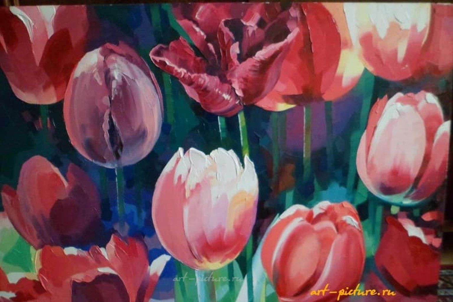 Ой, как мне хочется поделиться своими впечатлениями о работе, которую ты описал! Я вижу, что ты говоришь о таких ярких и насыщенных тюльпанах, и это навевает на меня весеннее настроение. Я всегда восхищаюсь, как художники могут передать через свои работы такую радость и жизнь!