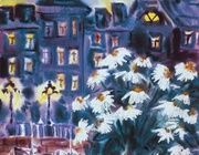 Какой потрясающий пейзаж! Смешение ярких желтых цветов и холодного синего фона создает невероятное ощущение контраста и гармонии. Вдохновляет та тихая красота города под вечерним светом — будто ощущаешь магию этого момента.