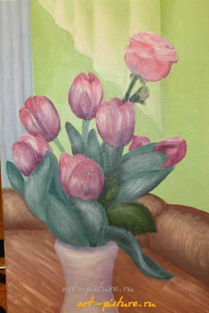 Ваше описание произведений искусства сразу же вызывает интерес и погружает в атмосферу, которой действительно необходимо уделить внимание. Начнем с картины с букетом тюльпанов, выполненной маслом. Этот элемент артоведения, кажется, несет в себе как положительные, так и отрицательные аспекты с точки зрения современного художественного контекста.