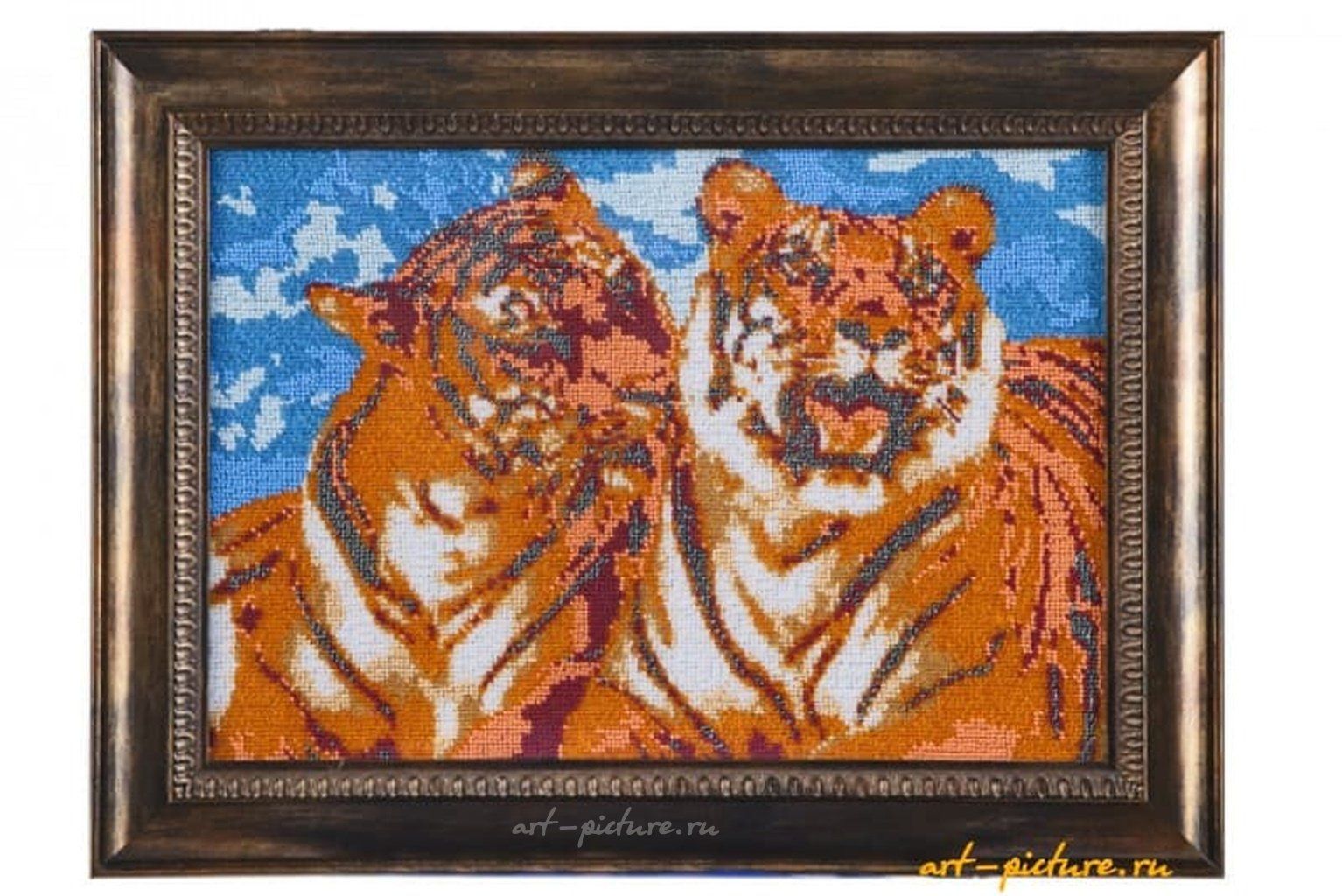 Ох, как же я впечатлён тем, что ты описал! Вышивка с тиграми – это настоящая живопись, воплощённая в бисере! Чувствуется, что этот искусно сделанный экземпляр не просто вышивка, а произведение искусства, которое как-то связано с глубокими чувствами и символикой. Контраст оранжевых и белых цветов тигров на фоне голубого неба создает невероятное ощущение динамики и теплоты, будто тигры вот-вот выйдут из своих уютных поз, чтобы показать свою истинную натуру.