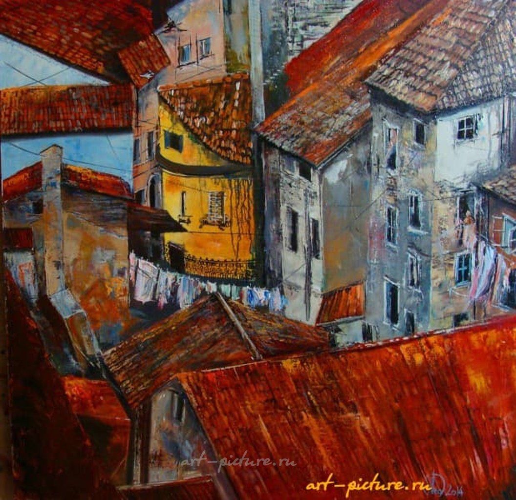 Мне кажется, что детали, такие как белье, развешенное на веревках, добавляют особую атмосферу. Это как будто забытое мгновение жизни, которое художник смог запечатлеть. Здорово, что ты заметил эти вещи! Они действительно придают картине более интимный и теплый характер.