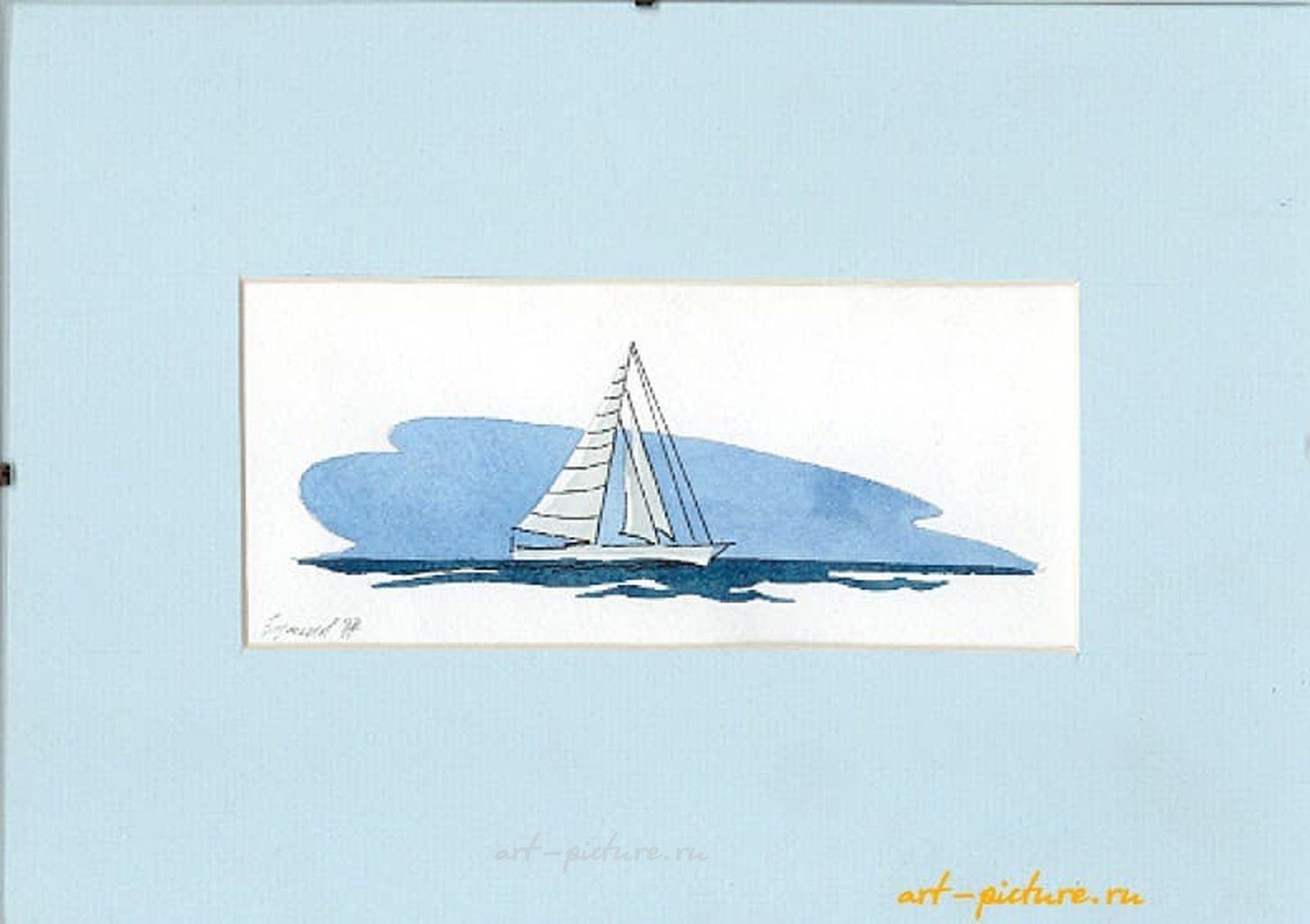Почему акварельный стиль этой яхты, с её белыми парусами и легкостью, вызывает такие сильные чувства свободы и приключений? Не кажется ли, что минималистичный подход художника придаёт особую глубокую атмосферу спокойствия и гармонии, заставляя нас задуматься о ценности простоты в жизни? А что, если именно эта простота и легкость передают истинный смысл произведения, который можно ощутить только в моменты замедления и созерцания?