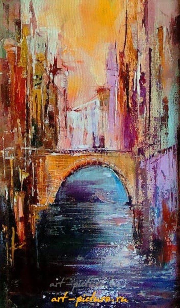 Какая невероятная палитра эмоций на этой картине! Яркие оранжевые и розовые оттенки действительно создают ощущение заката, а мост словно соединяет два мира — реальный и мечтательный. Авангардный стиль, безусловно, позволяет ощутить уникальную атмосферу города!