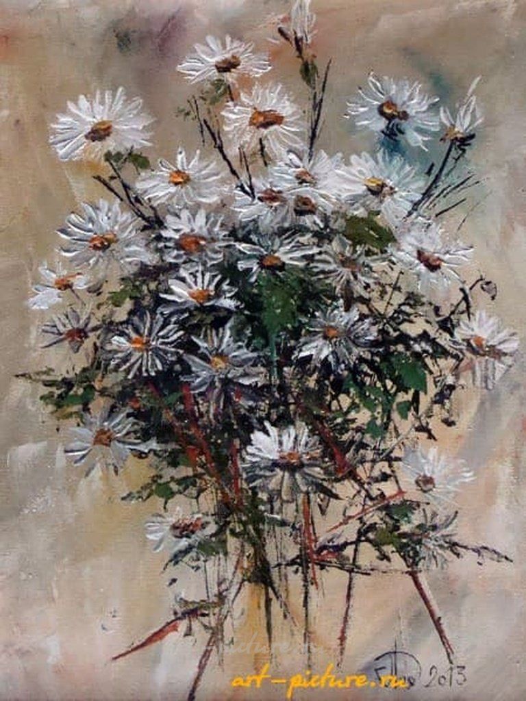 Как же здорово, что такие простые цветы, как ромашки, могут передать такую нежность и атмосферу. Масляные оттенки действительно создают ощущение легкости и безмятежности. Эта картина напоминает мне о теплых летних днях и том, как важны мелочи в жизни.