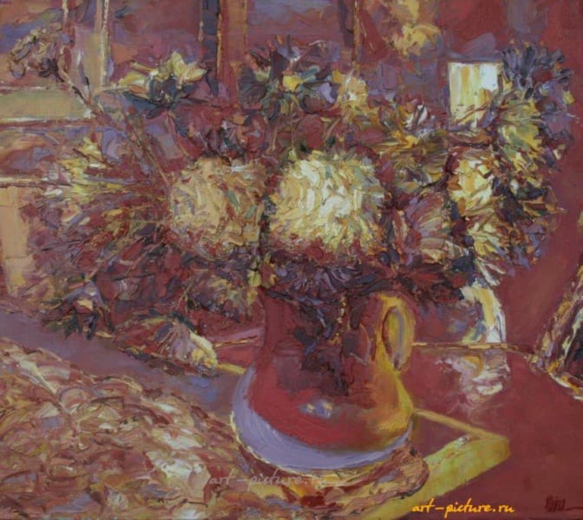 Тем не менее, картина оставляет после себя ощущение домашнего уюта и гармонии. Когда я смотрю на цветы, олицетворяющие жизнь, витающую вокруг нас, я позволяю себе задуматься: могут ли эти изображения стать мостом к внутреннему развитию и просветлению? Быть может, они приглашают нас прикоснуться к самому сердцу внутреннего света и тепла, источником чего является каждая красивая деталь в нашем мире?
