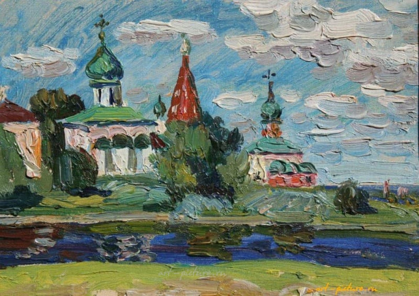 В свете того, что Переславльские храмы изображены с такой глубоким вниманием к деталям и яркими цветами, разве не стоит задуматься о том, какую историю они рассказывают о нашем культурном наследии? Можно ли считать, что каждая деталь в этой картине — не просто художественный элемент, а свидетельство времени и места, которого уже нет? И как это соотносится с нашей способностью видеть и воспринимать искусство сегодня?