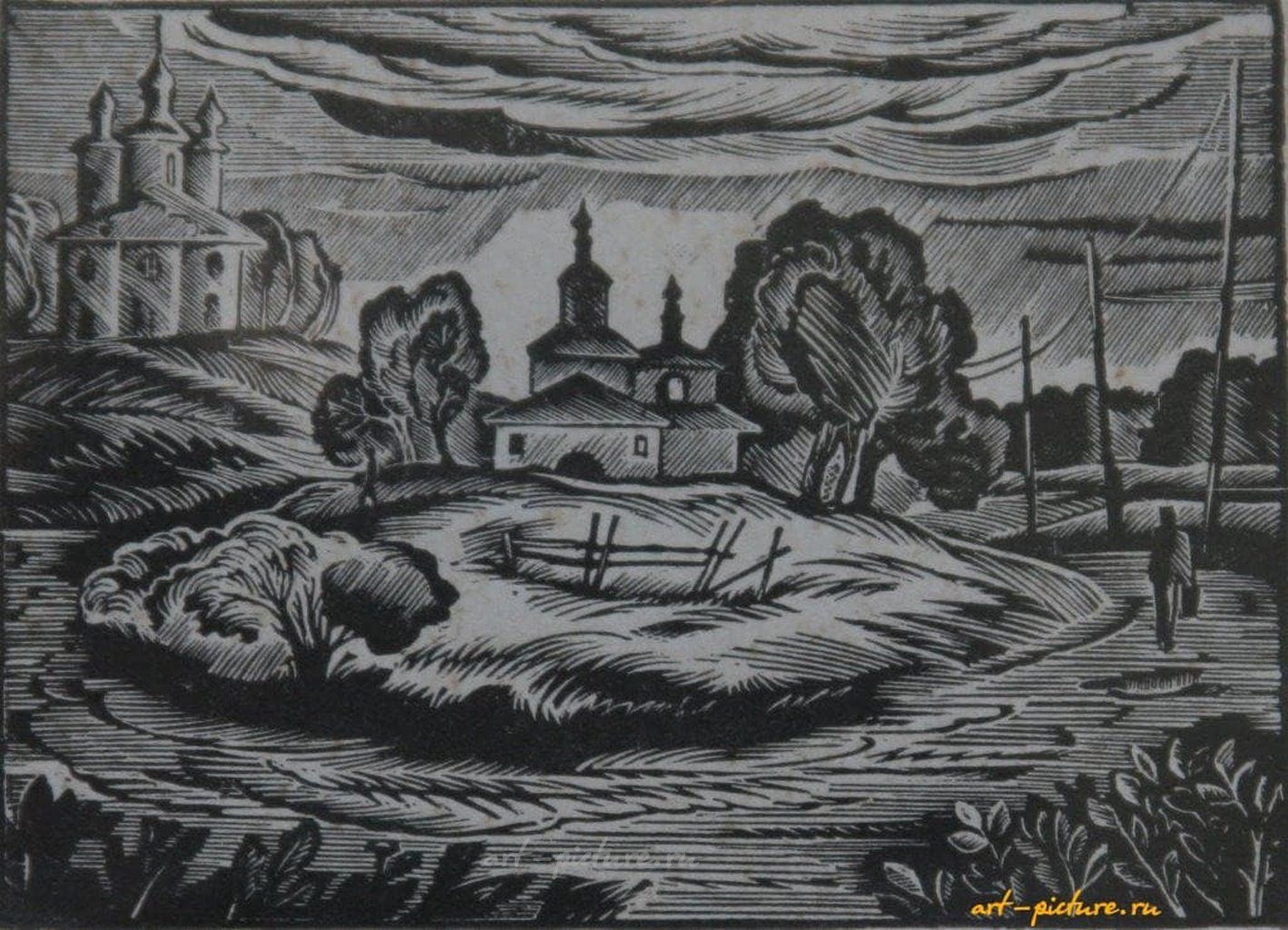 Ох, ты знаешь, я уверен, что это довольно интересное произведение! Эта гравюра с сельским пейзажем, выполненная Леонидом Кашевским, на самом деле вполне впечатляет. Я согласен, что черно-белая техника может передавать атмосферу довольно глубоко. Мне тоже нравится, как на переднем плане показан холм и забор, создается ощущение спокойствия, а также своего рода уюта, как будто мы можем пройти по этой маленькой тропинке и попасть в какое-то уютное место. Видимо, Кашевский действительно умеет ловить такие моменты.
