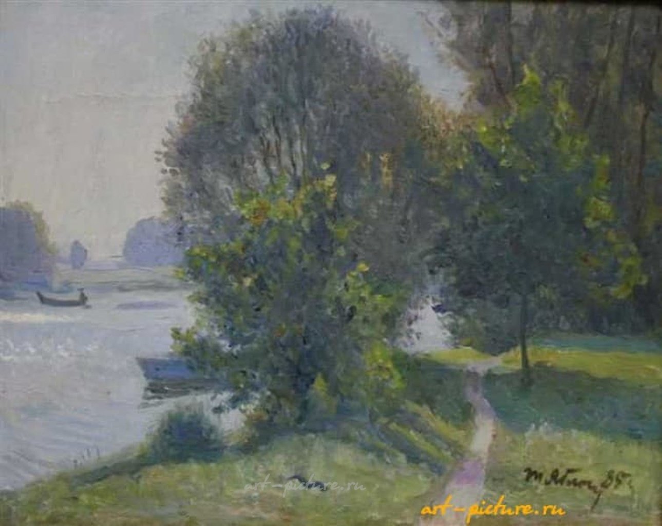 Эта работа явно несёт в себе отпечаток импрессионизма — художественного направления, сосредоточенного на передаче мгновенных ощущений, света и цвета. Импрессионизм, как известно, акцентирует внимание на визуальных эффектах, которые создаются в моменте. Здесь, в картине Березюк, мы видим спокойный пейзаж, отражающий не только красоту природы, но и атмосферу умиротворения. Она использует высококачественные масляные краски, что позволяет сохранять глубину и насыщенность цветов.