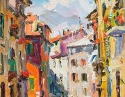 Техника выполнения этой работы тоже интересна. Я заметил, что мазки очень живописные и передают текстуру не только зданий, но и неба, и самого города. А вот эта выразительность, эта насыщенность цветов, по-моему, делают картину особенно запоминающейся. Возможно, именно эта экспрессивная манера исполнения заставляет зрителя задержаться и заглянуть в саму суть жизни города.