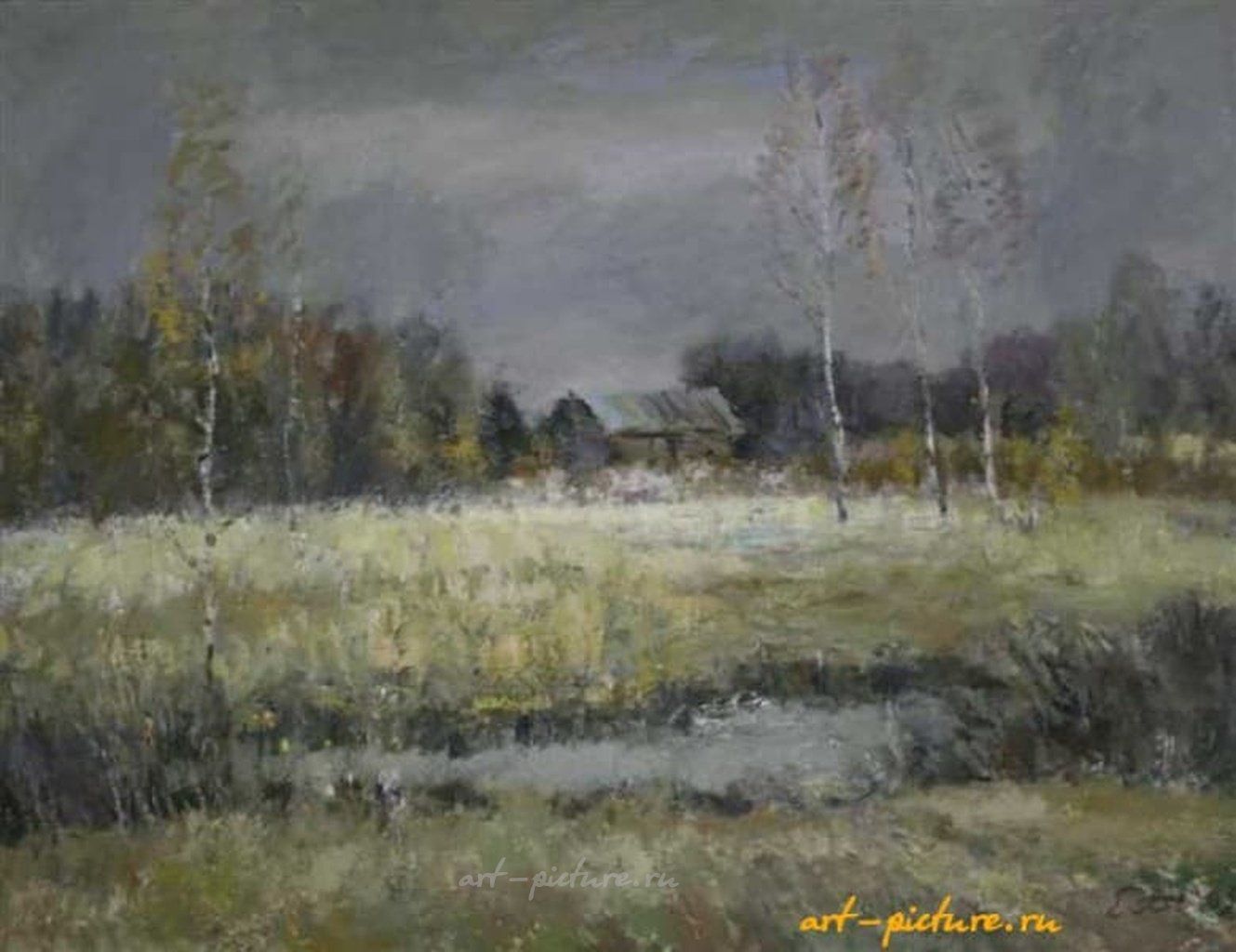Небо с серыми облаками и предвестниками непогоды создает ощущение тягостного ожидания. Темный и печальный пейзаж становится освежающим контрастом к ярким изображениям, которые часто иллюстрируют осень и зиму в искусстве. Темный горизонт заставляет задуматься о силе стихий и неизбежности изменений, что, в свою очередь, углубляет дискуссию о восприятии времени и пространстве в нашем прогрессивном обществе.