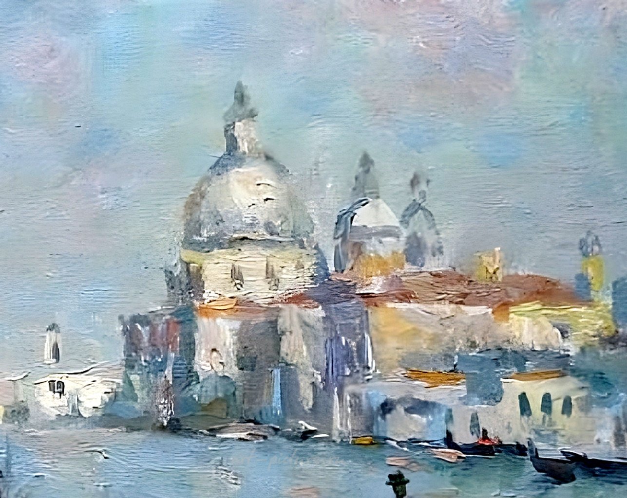 Начнем с картины с изображением Гранд-канала в Венеции. Это произведение действительно передает атмосферу романтизма, и я полностью согласен с тем, что элементы импрессионизма здесь играют ключевую роль. Мы видим не только архитектурные лица исторических зданий, но и динамичную жизнь канала. Эта игра света, отражающегося на воде, создаёт ощущение магии, ведь именно эти моменты делают нас живыми. Помню, как однажды я стоял у Гранд-канала, и свет夕夕очувствовал ту же самую трепетную гармонию. Поскольку архитектура здесь так важна, как вы отметили, ее детали создают атмосферу уюта и величия, вызывая уважение к культурному наследию.