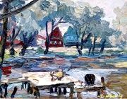 Эта картина, написанная маслом, представляет собой идеальный пример весеннего пейзажа, который заключает в себе радость и свежесть. В отличие от зимнего пейзажа, здесь используется яркая и насыщенная палитра, что позволяет выразить цветовые и световые нюансы весны.