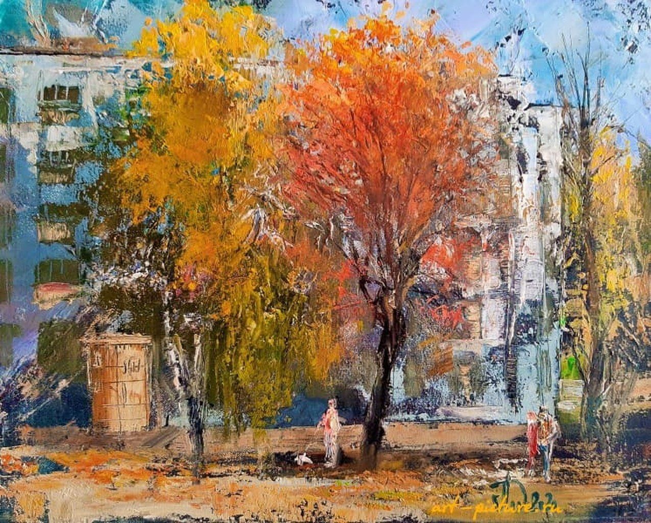Ваше описание картины, изображающей осенний городской двор, мне кажется очень интересным и полным деталей, которые дают нам богатую визуализацию. Я не могу не отметить, что этот объект искусств действительно вписывается в контекст импрессионизма. Я обожаю, как он передает живую атмосферу города — это отражение жизни, которое может быть недоступно в более формальных стилях живописи.