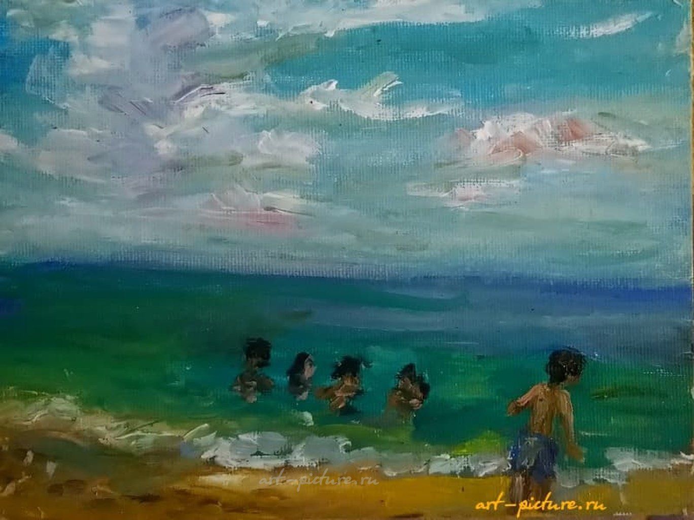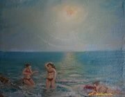 Купание детей. Бали масло, холст