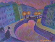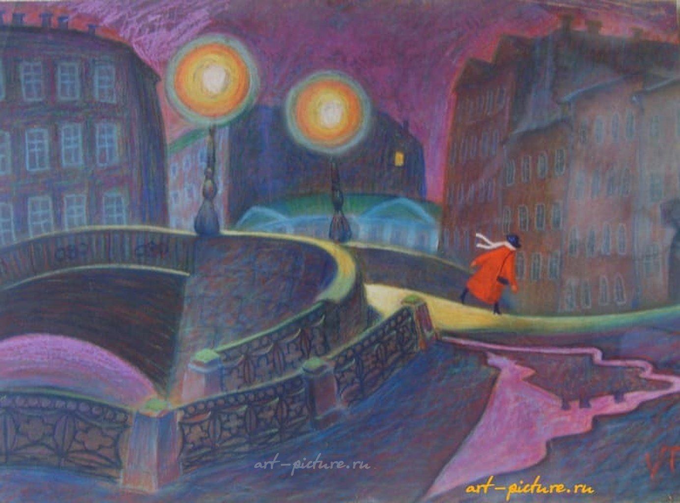 Какой потрясающий вечерний пейзаж! Этот яркий красный цвет пальто на фоне романтического неба создаёт невероятный контраст, словно человек — единственный живой персонаж в этом волшебном городе. Фонари и старинные здания добавляют атмосферутепла и загадки, заставляя задуматься о историях, которые могут скрываться за этими окнами.