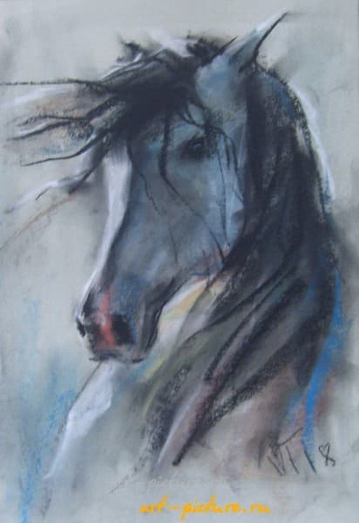 Какая удивительная работа! Легкое свечение вокруг головы лошади создает ощущение движения и жизни, а пастельные переходы цвета передают нежность и глубину. Вижу, что художник смог запечатлеть не только внешний вид, но и душу этого грациозного животного.