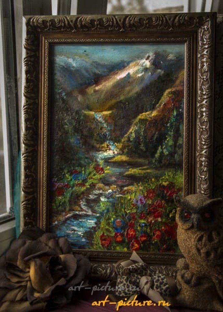 Какова, по вашему мнению, главная сила пейзажной живописи: способность передать яркие эмоции или удивительное взаимодействие элементов композиции? Взглянув на горный пейзаж с мощными такими как на этой картине, нельзя ли ощутить, как природа решает все за нас? И разве это не удивительно, что каждый художник находит свой уникальный способ говорить с зрителем через цвета и формы? создавать ли это взаимодействие?!