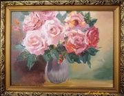 Какой удивительный натюрморт! Цвета так гармонично сочетаются, а оформление в золотой раме действительно добавляет аристократичного шарма. Сирень и пионы создают атмосферу весны и нежности, словно хочется затянуться ароматом этих цветов.