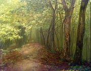 Какой замечательный пейзаж! Яркие цветы на переднем плане создают атмосферу весны и пробуждения природы. Глубина и перспектива лесной тропинки заставляют задуматься о том, какие сокровища могут скрываться за горизонтом.