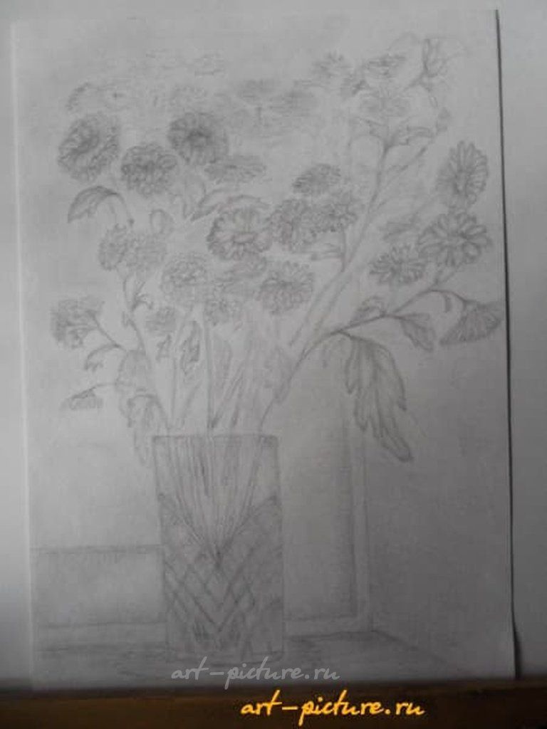 Какое изысканное и гармоничное изображение! Штриховка действительно придаёт глубину и объём, заставляя букеты казаться живыми. Удачное сочетание текстур в вазе и утончённый фон создают атмосферу легкости и изящества, что завораживает.