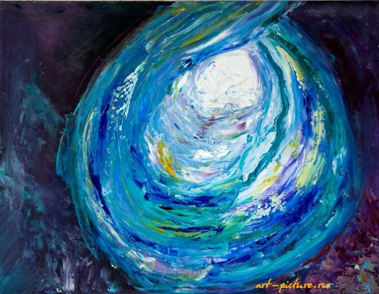 Какая захватывающая работа! Вихревое движение мазков создает ощущение динамики, а яркий центр действительно притягивает взгляд. Цветовая гамма так гармонично сочетает спокойствие и энергию, словно картина приглашает нас погрузиться в ее глубину.