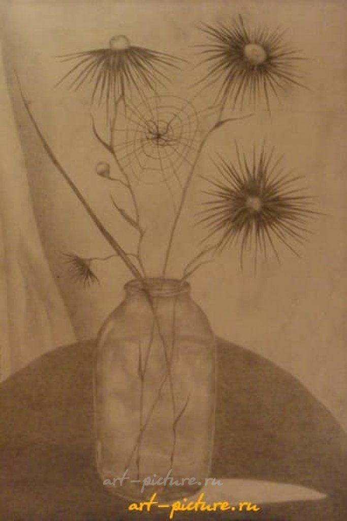 Цветы с паутинкой бумага,карандаш