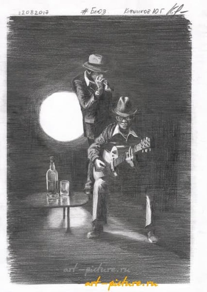 Какой шикарный рисунок! Атмосфера действительно передает дух блюза и джаза, хочется оказаться на таком концерте. Музыка в черно-белом исполнении всегда вызывает ностальгию и создаёт атмосферу уюта!