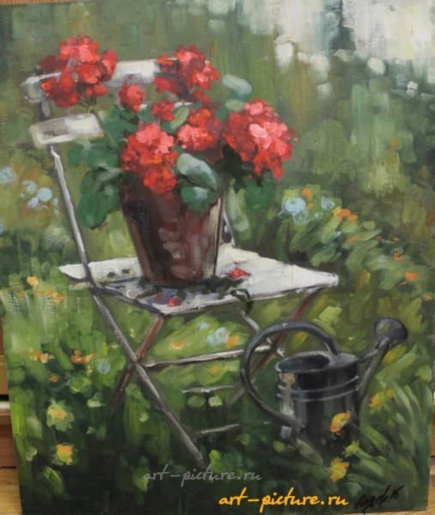 Какая удивительная картина! Яркие красные цветы на фоне зелёной травы создают настоящую гармонию. Импрессионистский стиль так передаёт атмосферу спокойствия и лёгкости, будто здесь можно провести весь день, наслаждаясь красотой природы.