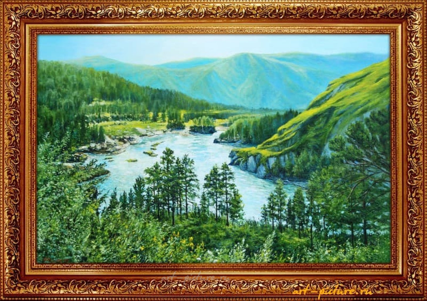 Горная долина… от которой захватывает дух! В эти моменты ты действительно начинаешь сожалеть о том – ну почему же ты не птица?! Как жаль, что люди не умеют летать, хотя бы в таких прекрасных местах! Такие места на Земле дают возможность, хотя бы чуть-чуть, прикоснуться к захватывающему дух полёту птицы, как будто ты сам паришь над землёй, вбирая всеми своими лёгкими кислород, а телом – адреналин полёта! Конечно, через холст это ощущение не передать на все сто процентов, но частично прикоснуться можно…
